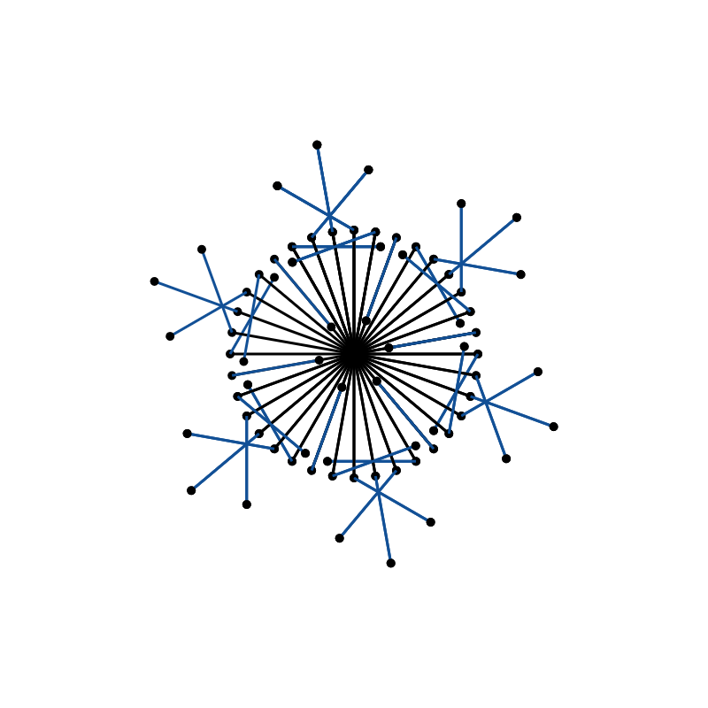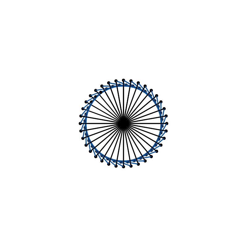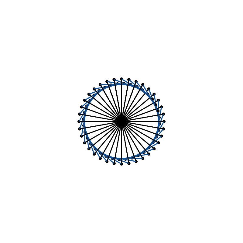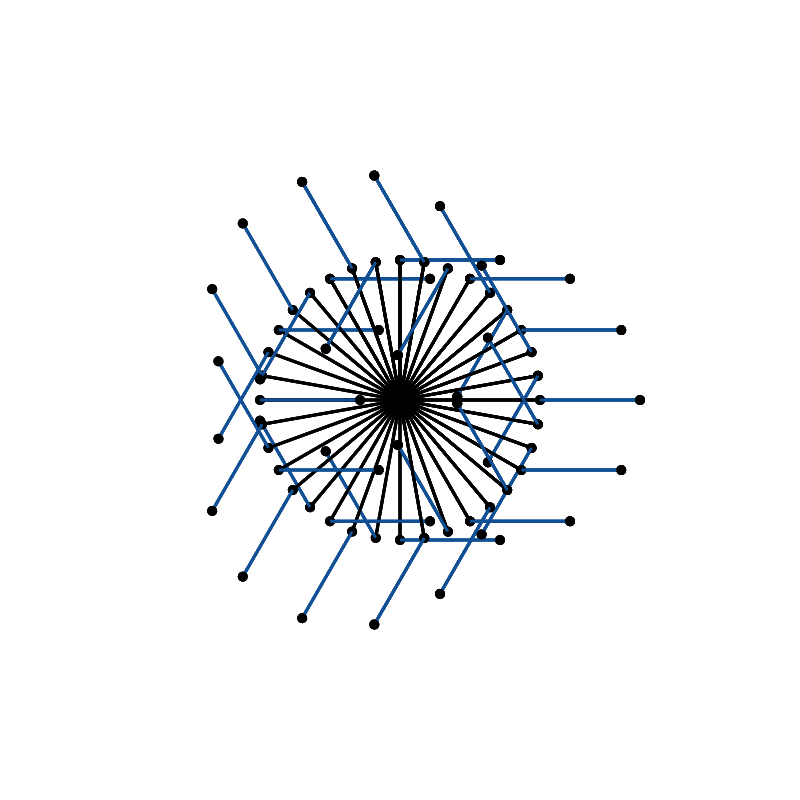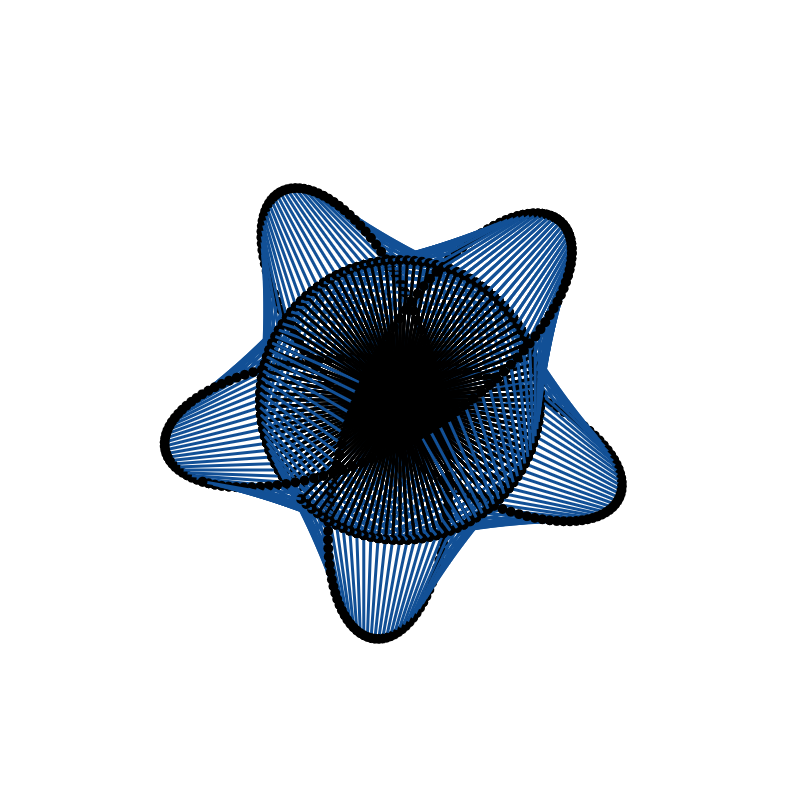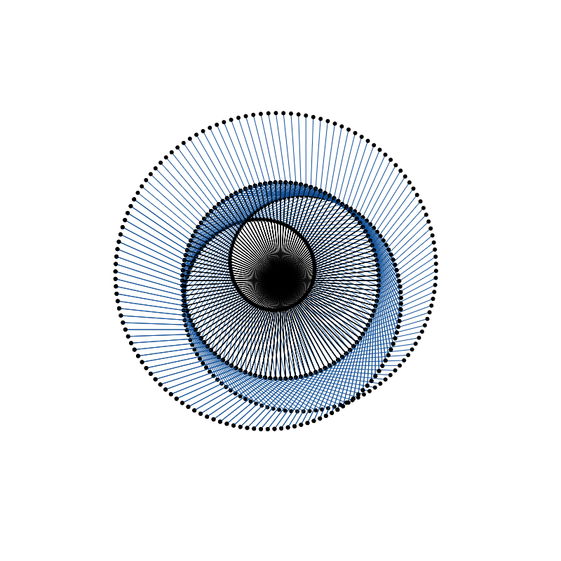 用js计算,用canvas绘制,实现机械臂的时候因为一点小问题不小心画出了一堆外摆线 的图。 先说一下我的设计方案 以x轴正方向为零度,逆时针旋转一定大小的角度。(这句话是不是没说明白。。就是大家熟悉的坐标系) 主要有两根线,第一根线AB绕点A旋转,线BC绕点B旋转,B点坐标为A点坐标加上角1的余弦/正弦值乘AB的长度 然后角2为角1加上BC相对AB旋转的角度,C点坐标为B点坐标机上BC长度乘上角2的余弦和正弦值。 改变角1和角2,就会确定ABC各自的位置 然后