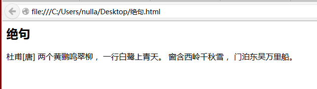 先不管为什么没有换行,把“绝句”改成 <h2>绝句</h2> 试试,重新保存成 html 文件试试?